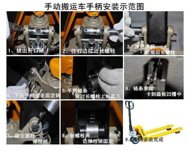 目前,越來越多的場所都會看到手動(dòng)搬運(yùn)車的身影,重量輕,容易操作,價(jià)格低,又經(jīng)濟(jì)實(shí)用。特別適用于汽車裝卸及車間、倉庫、碼頭、車站、貨場等地的易燃、易爆和禁火物品的裝卸運(yùn)輸設(shè)備。下面北京凌鷹技術(shù)人員來教你地牛手柄的安裝,詳情如下: