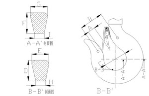 5.3如果有進行吊運作業(yè)時候未依照規(guī)定超載,吊鉤將會因超載撐開,當(dāng)?shù)蹉^之開口超過列表“B”區(qū)所示數(shù)值5%以上,必須更換,確保安全。