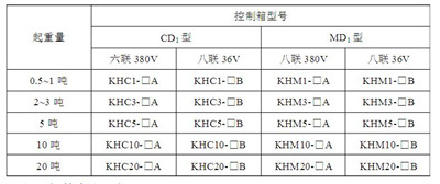 各種型號的電動葫蘆用的控制型號見表2。電氣原理見單頁圖紙。
