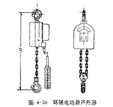 環(huán)鏈電動葫蘆是近幾年發(fā)展起來的小型輕便提升工具。它的主要特點是體積小,自重輕,操作靈活,可代替手拉葫蘆,特別是能實現多臺集中控制,節(jié)省勞動力。環(huán)鏈電動葫蘆的外形如圖4-50